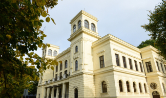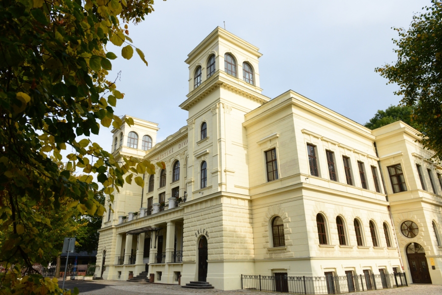 Reprezentativní budova stojící severozápadně od centra města v areálu městského parku byla postavena v roce 1905 v neorenesančním slohu s prvky secese. Symetrickému průčelí dominují po stranách dvě předstupující věže. Interiéry divadla doplňuje velmi zdařilá štuková výzdoba, která podtrhuje význam budovy jako „stánku múz“. Interiéry a exteriéry budovy doplňují propracované litinové a kovářské prvky se secesními detaily.